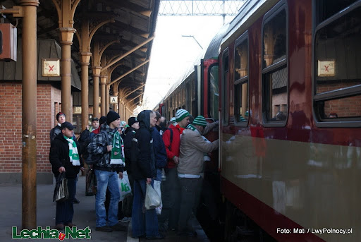 Na wyjazd do Poznania wybraliśmy się w 2 tys. osób. Na tą okazję zamawiamy dwa pociągi specjalne - jedziemy jak przystało na szlachtę wagonami dalekobieżnymi ;) Sama droga do Poznania mija spokojnie i bez atrakcji.