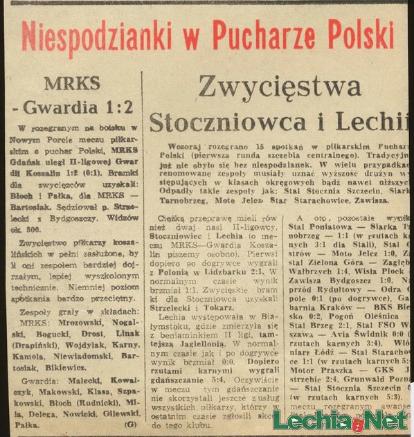 Pierwszy historyczny pojedynek został rozegrany 03. sierpnia 1975 w Białymstoku także w ramach Pucharu Polski (1/32 finału). Mecz zakończył się wtedy bezbramkowym remisem a o awansie zadecydowały rzuty karne, które lepiej egzekwowali piłkarzez Lechii. Bramki zdobyli: Makowski, Słabik, Tłokiński, Jahn i Gronowski [zobacz w jakim składzie zagrała Lechia]