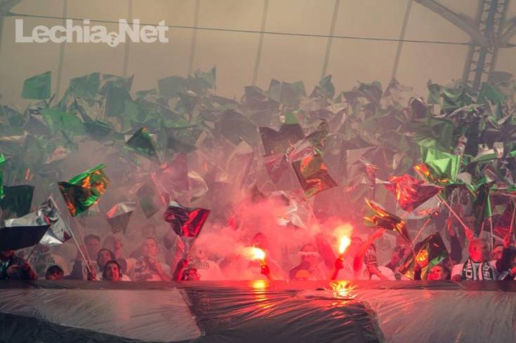 Przez te wydarzenia spora część kibiców nie zdążyła wejść na stadion przez pierwszym gwizdkiem. Zresztą, było to widać po zachowaniu naszych kibiców, bo przecież dopiero od 46. minuty rozpoczął się doping dla biało-zielonych. W pierwszej połowie skupiliśmy się na "pozdrawianiu" PZPN-u oraz policji. Szczęście w nieszczęściu, że przynajmniej żaden z nas nie przegapił zwycięskiej bramki.