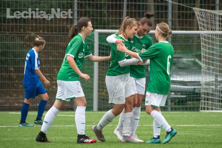 W deszczowe popołudnie do siatki rywalek trafiły po jednym razie Lidia Zakrzewska, Krystyna Lewna i Monika Formella. Z kolei grająca z numerem "10" Zuzanna Łachinowicz popisała się hat-trickiem. Po sześciu spotkaniach biało-zielone w tabeli trzeciej ligi zajmują piąte miejsce.