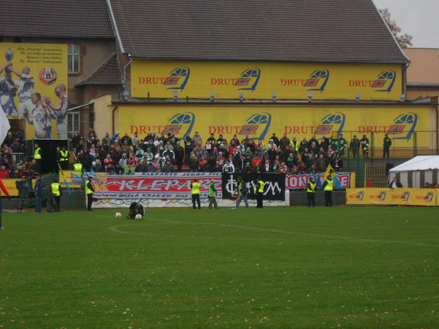 W grupie tej znaleźli się również sympatycy drużyny gości. W sektorze przeznaczonym dla kibiców przyjezdnych znalazło się około 140 kibiców z Krakowa wraz z flagami: Kleparz, Nieobliczalni oraz Bronowice. Wspierali ich fani Lechii Gdańsk w około 180 osób, w tym licznie reprezentowane fan cluby oraz 4 kibiców Czarnych Słupsk.